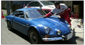 IRS時代の大仕事はフロントラジエターにしたことと、エンジンとミッションのオーバーホールだった。A110は本来、リアラジエターなんだけど高温多湿の日本ではオーバーヒートしてしまう。そこで、オプションのフロント用ラジエターを手配した。そこには配管などの図面があったので、「これなら行けそう」と思った。フロントのパイプフレームの中にアルミパイプを通して、前後の出口を加工して取り付けた。冷却はバッチリでフロントラジエターにしてからはオーバーヒートとは無縁になった。エンジンのオーバーホールは整備書があったので助かった。フランス語はわからなかったけど、トルク値など数字は理解できたから問題なしだったね。ミッションはオーナーが何基かスペアを持っていたので、その中から使えるギアや部品をセレクトして組みなおした。5速にしてはケースが小さかったのが印象的だった。オーナーが代わってからは、まずキャブレターの街乗り用への調整だった。それまでのファンネルをボックスタイプに変え、ベンチュリーを変えて低回転から使えるようにセットした。ウエーバーはまだまだ部品が手に入るから助かる。次に手掛けたのがサイドブレーキの変更だった。オリジナルはステッキタイプなんだけど効きが甘い。そこで、オーナーがラインロックを持ち込んできたんだ。これはドラッグレースで使っているアメリカンパーツで、ブレーキオイルのラインをロックするもの。ブレーキペダルを踏み込んでロック、アクセルペダルを踏み込めば解除されるというプッシュ式だった。キットだったから装着に関しては問題なかったが、戻りのバネが不調になりやすいというトラブルが生じた。そこで、作動が確実なレバータイプに変更。これでキッチリとサイドブレーキ状態となって、坂道発進も難なくこなせるようになった。オリジナルにこだわらず現在でも使いやすいように加工するのも、旧いクルマを維持していくひとつの手段だと思う。(2008/10/01)