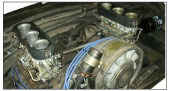 最初にやったのはオイルのリターンチューブの交換だった。お約束のOリングからオイルが漏れていたのだ。本来はエンジンヘッドを外すのだけど、オーナーがアメリカ製の便利なチューブを手に入れてきてくれた。ウエルトマイスター製のエクステンディング・リターンチューブで、組み付けやすいように伸び縮みするストローのようになっていたのだ。EXマニは外さなきゃならなかったけど、当然ボルトが熱でダメになっていた。このリカバリーのほうがチューブ交換より大変だった。カラーをはめてドリルで直したんだけど、1本直すのに果てしなく時間がかかった。次に不調を訴えていたゼニス製キャブレターの修理。調整の範囲を越えていたことと、ガスケットキットが手に入ったんで、思い切ってオーバーホールすることにした。バラしてみたら案の定カーボンが詰まっていた。構造自体はソレックスにそっくりだったから戸惑うことはなかった。で、カーボンを落とせば済むと思っていたら、一部のパーツが腐食していて使い物にならないことが判明。ガスケットキットにはそのパーツは含まれていなかったから、仕方なく新たに起こすことになってしまった。それが出来上がってから組み直したんだ。エンジンを掛けてみて、完調になったときは「やった!」と思ったね。最後はリアのスタビライザーの取り付けだった。アメリカ仕様は乗り心地重視のためかスタビは最初から付いていない。そこで、オーナーが中古スタビを入手。ヨーロッパ仕様には標準装備だから、取り付けの場所には困らなかったが、ブラケットは作らざるを得なかった。そして付けてみたら、オーナーが「効きすぎ」と言う。本来は細めのスタビ交換するところだけど、天地を削って捻り剛性を低めてみた。そうしたらオーナーは納得してくれた。仕上げにストラットアッパーを調整して、キャンバーとキャスターを適正値にしたらクルマは落ち着いた。この911Tも思い出深い1台だね。(2008/09/30)