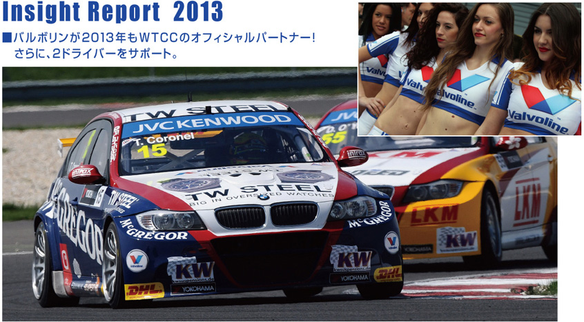 バルボリンは昨年同様にヨーロッパラウンドのWTCC(ワールド・ツーリング・カー・チャンピオンシップ)のオフィシャルパートナーとなった。バルボリンブランドをまとったセクシーなコスチュームのグリッドガールがスタート前に花を添え、表彰式ではレースクイーンとして締めくくる。また、バルボリンブランドをあしらった横断幕が優勝したマシンとドライバーを歓迎する。そう、今年もヨーロッパの各サーキットでVALVOLINEのロゴを目にすることとなるのだ。各サーキットで2ラウンドのレースを行うWTCC。第1レースはローリング、第2レースはスタンディングとスタート形式を変えるだけでなく、第1レースの上位10台の順位を入れ替えて第2レースに臨むことで常にデッドヒートを展開する。正にバトルとも言える激しいスプリントレース、それこそがWTCC人気のポイントだ。ヨーロッパラウンドは3月23~24日のモンツァ(イタリア)、4月6~7日のマラケシュ(モロッコ)、4月27~28日のスロバキアリンク(スロバキア)、5月4~5日のブダペスト(ハンガリー)、5月18~19日のザルツブルグ(オーストリア)と5戦10ラウンドを終え、今後は6月8~9日にモスクワレースウェイ(ロシア)、6月29~30日にポルト(ポルトガル)で展開される。
