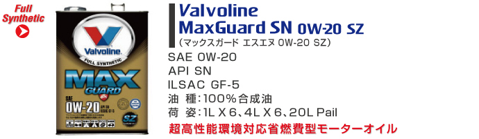 バルボリン マックスガードSN 0W -20 SZは、厳選された100% 合成油をベースに最新の省燃費技術を結集して開発された超高性能環境対応省燃費型モーターオイルです。フリクションロスを極限まで低減させながら100%合成油の持つ強靭な油膜特性