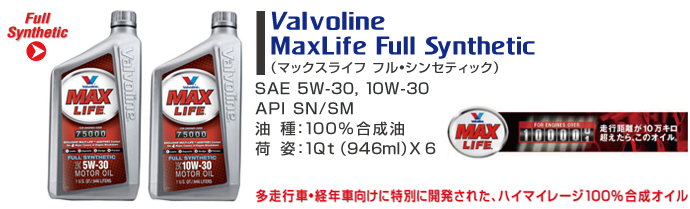 「マックスライフ・フルシンセティック」は、シンセティックオイルとプレミアム・ベースオイルをバランスよくブレンドし、同時に優れたシール剤、特殊清浄剤、耐磨耗剤・摩擦調整剤を混合することにより、ハイ・マイレージ車にぴったりの特性を実現しました。もちろん、新車にもリビルト・エンジンにも使えます。当商品は、シンセティックブレンドと比べて、オイルの焼きつきや摩擦に対して最も強力な保護性能を発揮します。その添加剤システムは、エンジン寿命を最大限にするよう複雑なアプローチを採用しています。