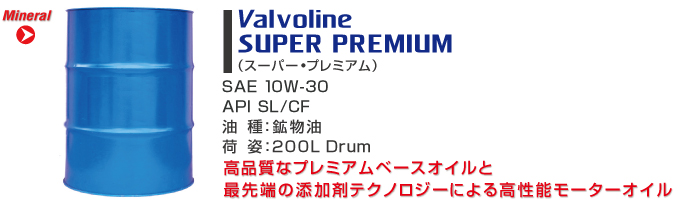 バルボリン・スーパープレミアムは、特に厳選されたプレミアムベースオイルに、清浄分散剤、粘度指数向上剤をバランスよく配合し、さらに摩擦緩和剤を効果的に加えたコストパフォーマンスに優れた高性能モーターオイルです。ファミリーカーからターボ搭載車まで幅広い車種に適応しオールシーズン使用可能です。