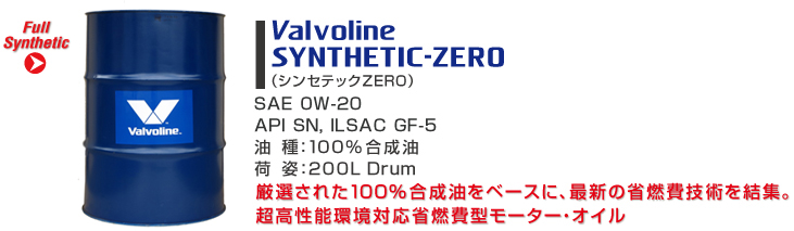 バルボリンシンセティックZERO SAE0W-20は、厳選された100%合成油をベースに最新の省燃費技術を結集して開発された超高性能環境対応省燃費型モーター・オイルです。フリクションロスを極限まで低減させながら、100% 合成油の持つ強靭な油膜特性と流動性を持ち、低粘度対応の低排出ガス車用エンジンオイルとしてのエンジン本来の持つ性能をフルに発揮させます。